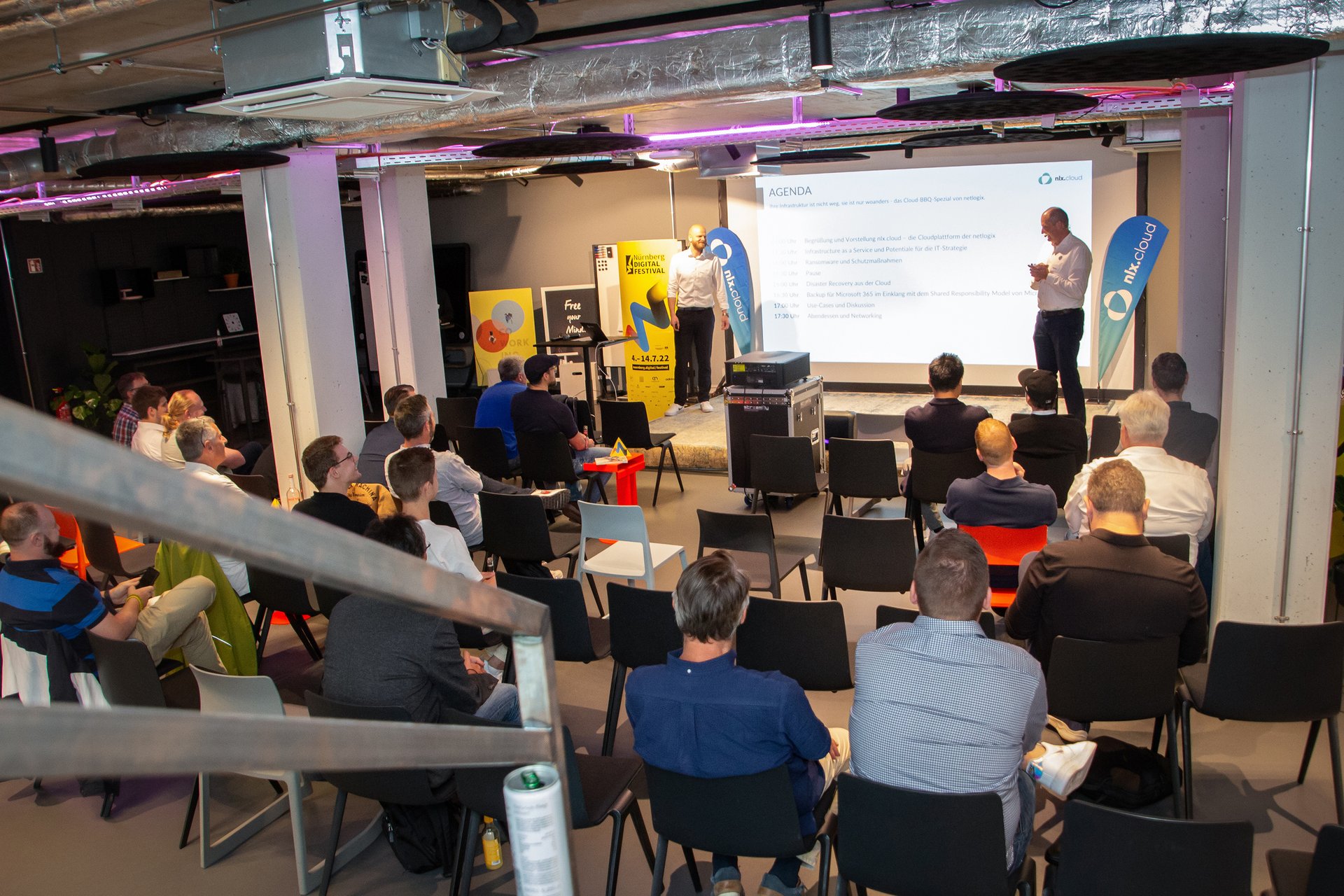 Neben spannenden Einblicken in die Technologie einer eigenen Cloudplattform gaben Jochen und Stefan einen Überblick über unser Portfolio hinter nlx.cloud und den Möglichkeiten, wie moderne mittelständische Unternehmen von der "Wolke" profitieren können.