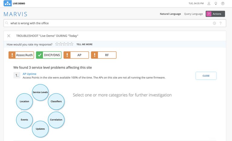 Um einen End-to-End-Einblick in die Benutzererfahrung zu erhalten, werden Daten aus zahlreichen Quellen wie Wifi Access Points, Switching- und Routing Geräte gesammelt. Diese Geräte arbeiten mit der künstlichen Intelligenz zusammen, um das Arbeiten ihrer Mitarbeiter zu optimieren, Ereignisse automatisch miteinander zu verknüpfen, der Ursachenerkennung bei Problemen in Netzwerken, der Netzwerkabsicherung, der proaktiven Anomalieerkennung und vielen weiteren Features.